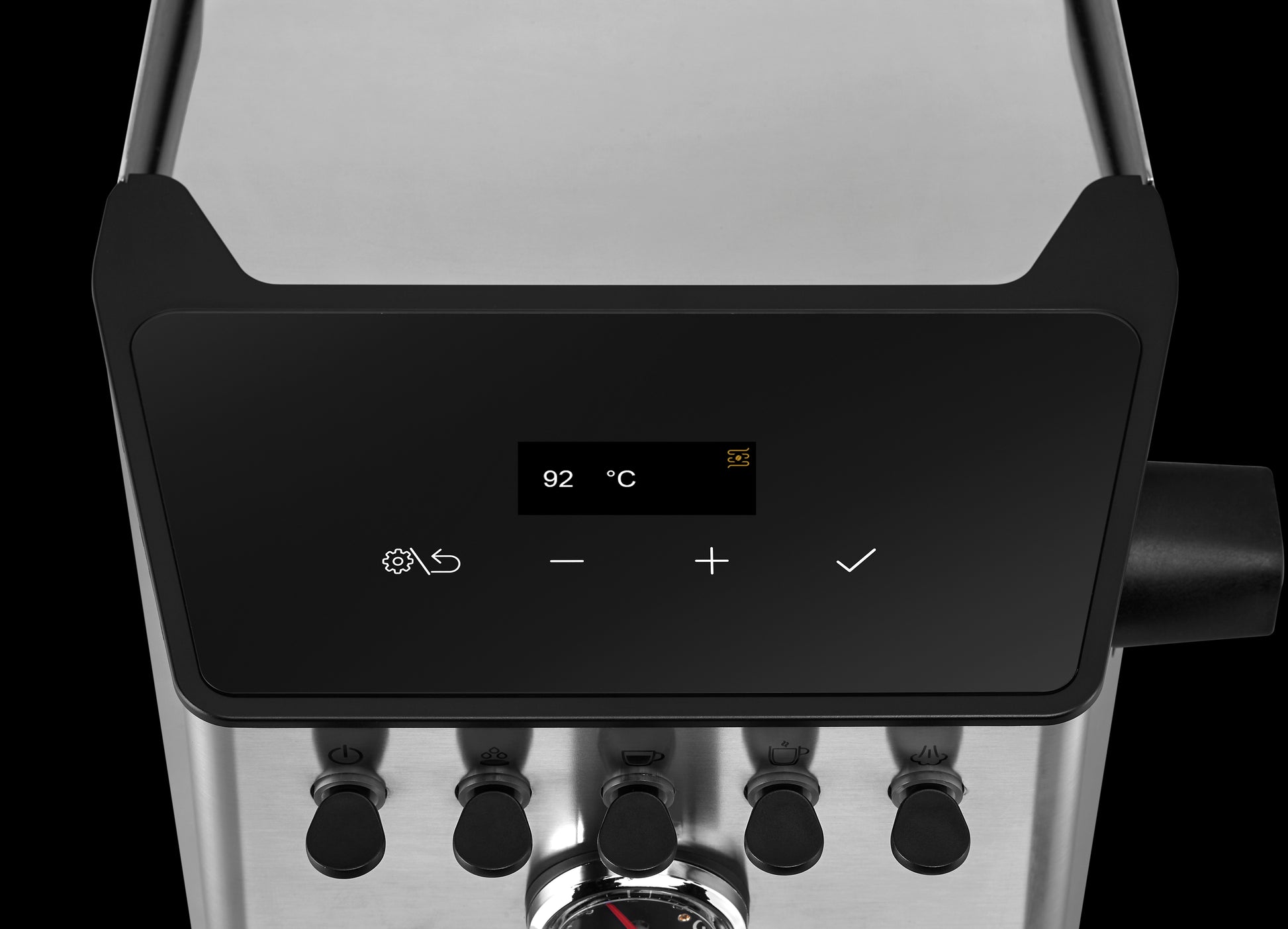 • Adjustable temperature for coffee and steam (in °C or °F).